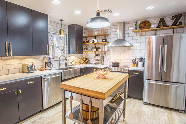 From boxed in and stuffy, to bright, airy, and brick. This kitchen was a complete transformation and features stunning industrial touches.